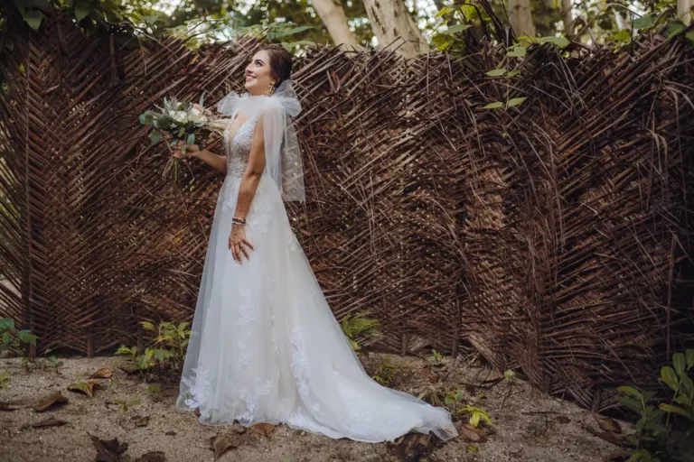 Por el contrario, lo que ocurre con esta silueta es que tienen la parte superior más pronunciada que las caderas, así que el objetivo que debe cumplir el vestido nupcial es lograr que visualmente las caderas parezcan más anchas. Para esto, los diseños que mejor se adaptan son los “A” y el corte princesa.